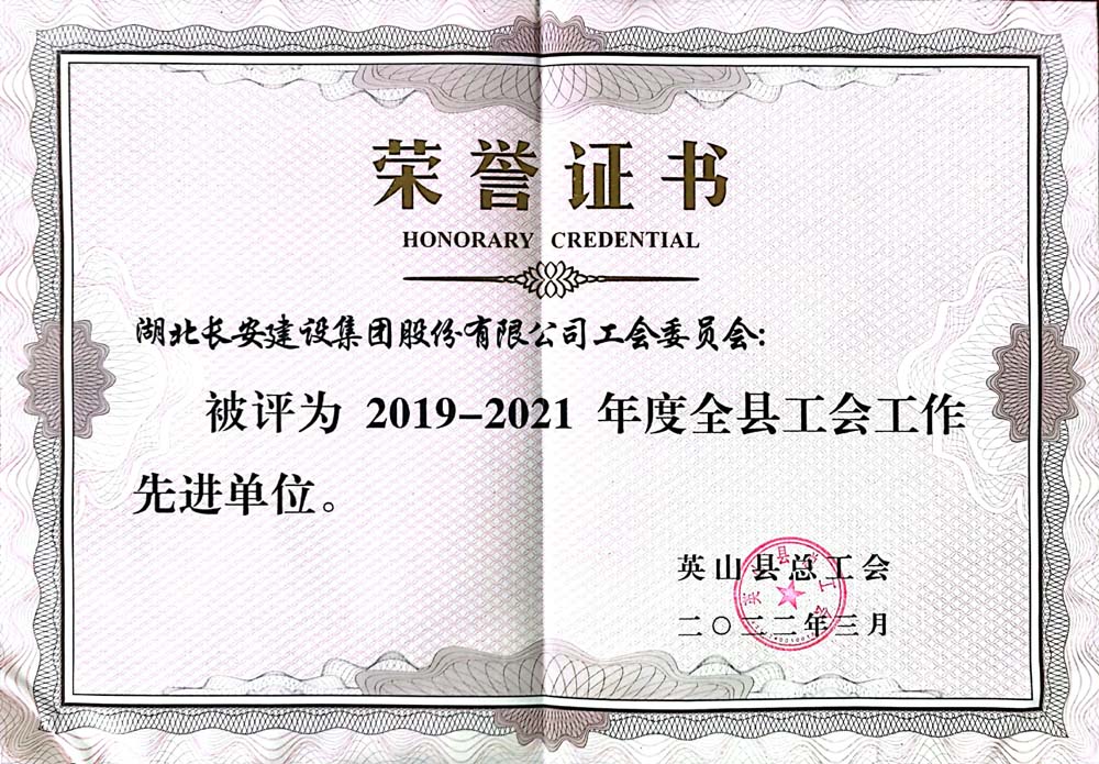 集團工會被評為2019-2021年度英山縣工會工作先進單位
