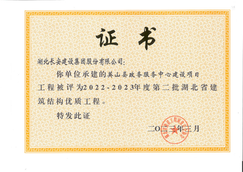 英山縣政務服務中心建設項目等7個工程獲評2022-2023年度第二批湖北省建筑結構優質工程