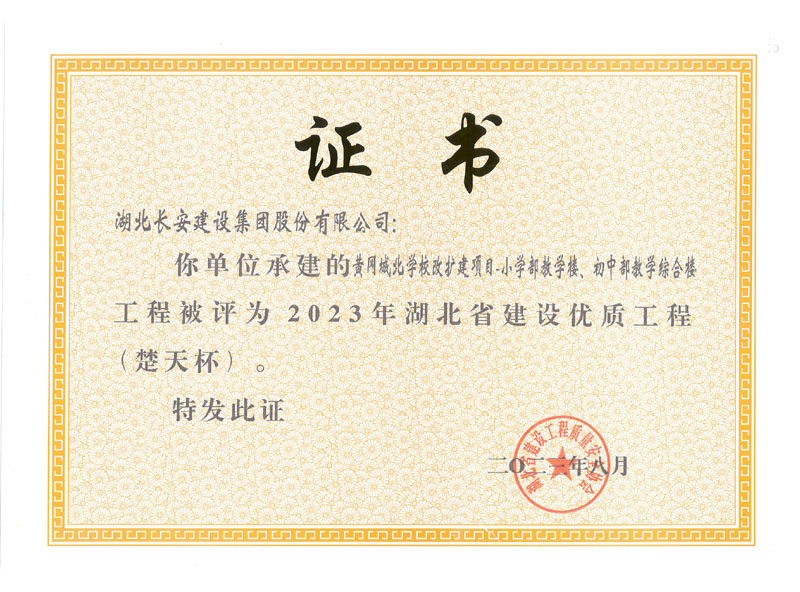 黃岡城北學校改擴建項目等11個工程獲評2023年湖北省建設優秀工程(楚天杯))