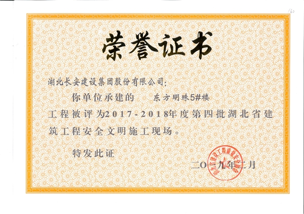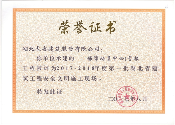2018年省安全文明榮譽證書