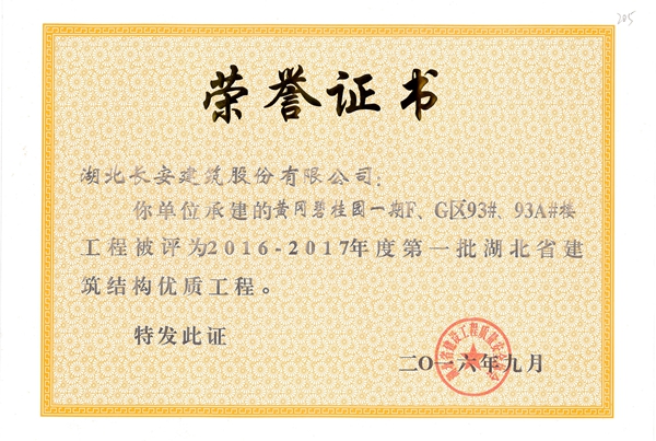 2017年省建筑結(jié)構(gòu)優(yōu)質(zhì)工程榮譽證書
