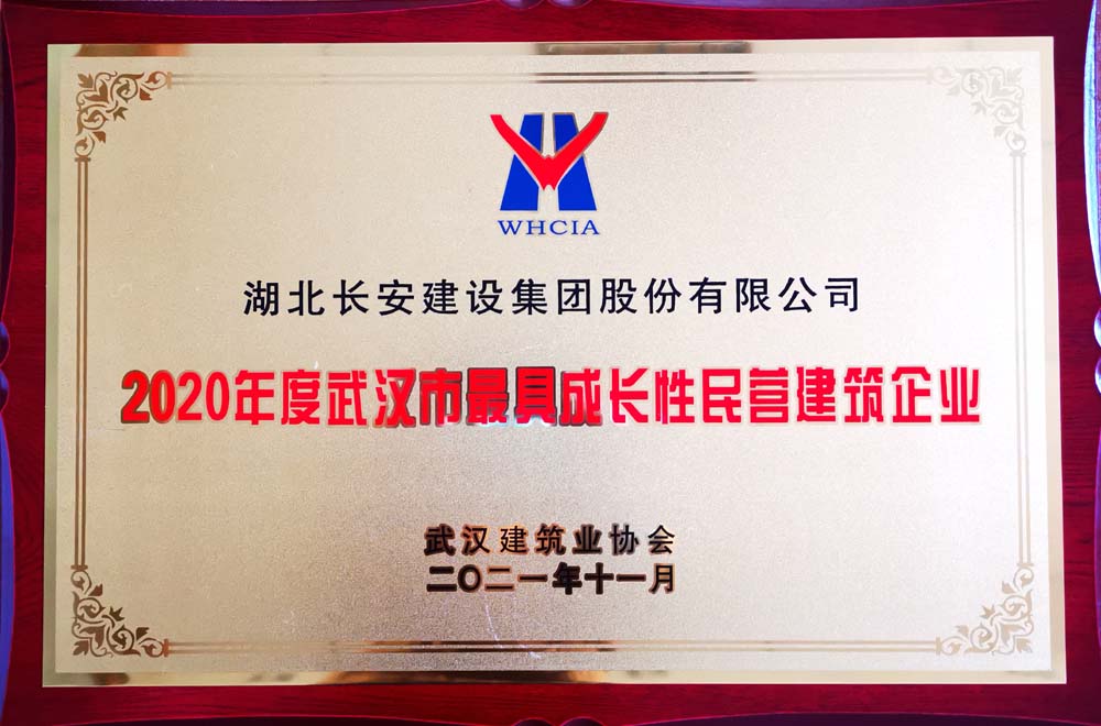 湖北長安建設集團榮獲2020年度武漢市最具成長性民營建筑企業榮譽稱號