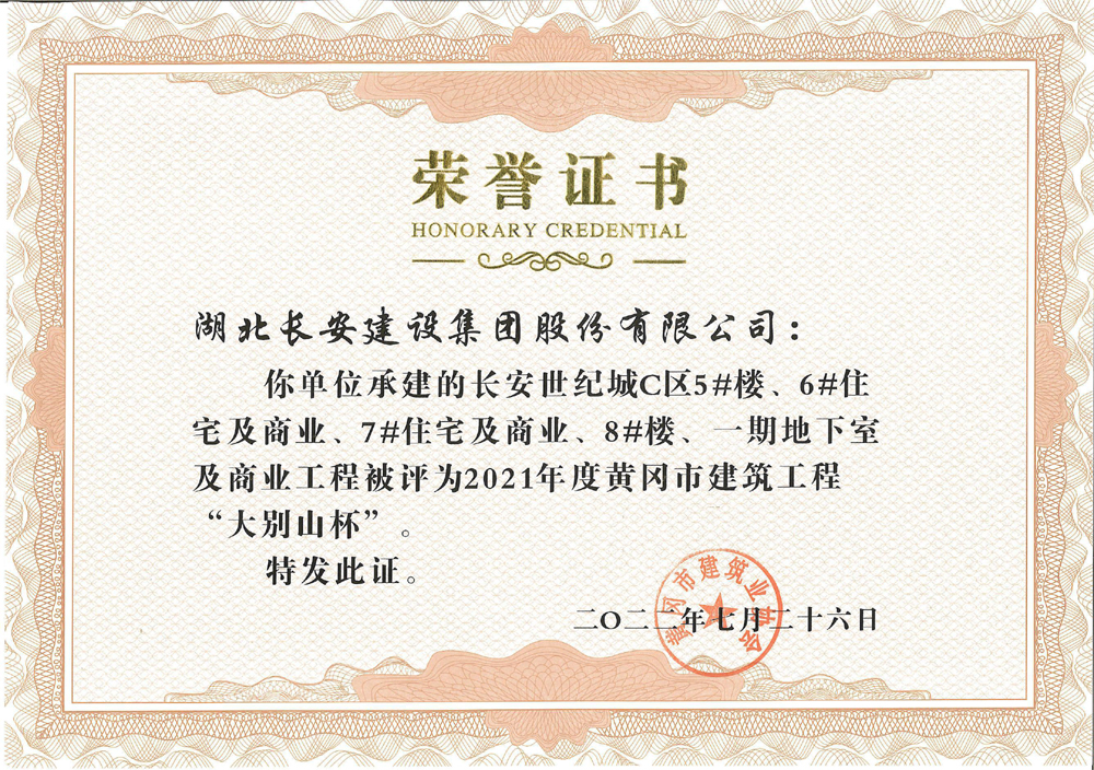 公司承建的4個工程被評為2021年度黃岡市建筑工程“大別山杯”