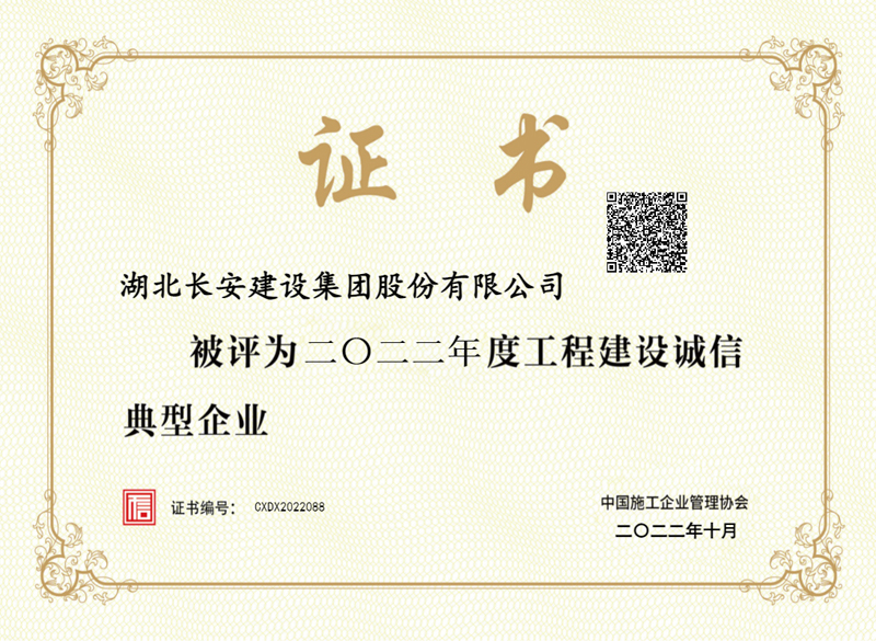 榮獲二O二二年度工程建設誠信典型企業稱號