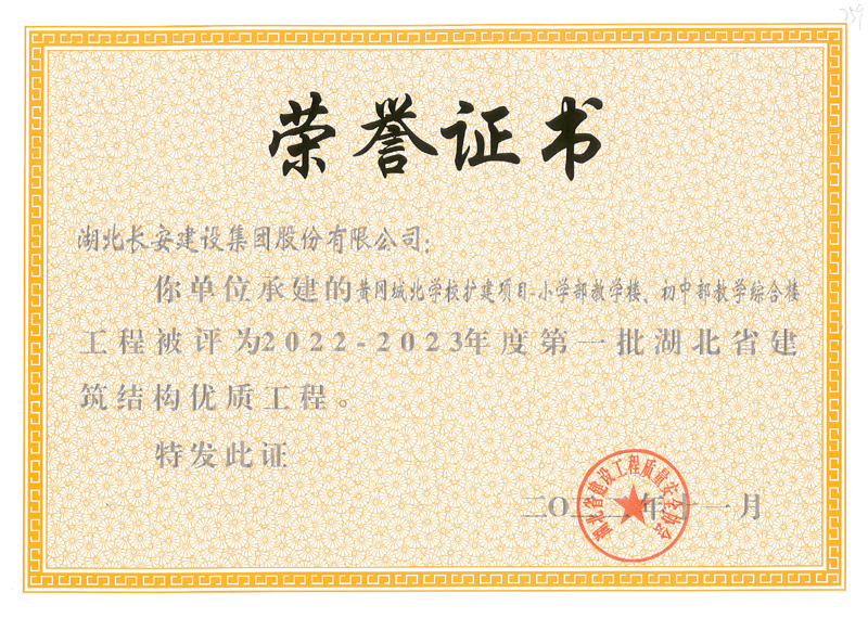 黃岡市黃州區(qū)萬(wàn)福實(shí)驗(yàn)學(xué)校等9個(gè)工程榮獲2022-2023年度第一批湖北省建筑結(jié)構(gòu)優(yōu)質(zhì)工程