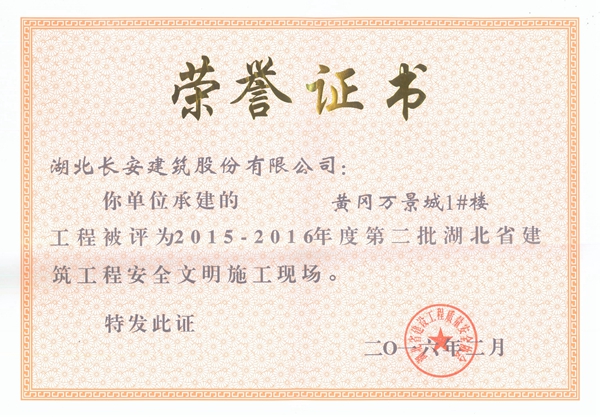 黃岡萬景城1#樓被評為2015-2016年度第二批省安全文明施工現場