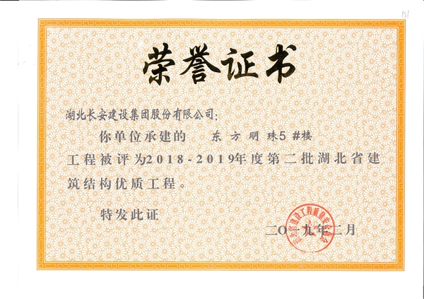 東方明珠5#樓工程被評為2018-2019年度第二批省結構優質工程