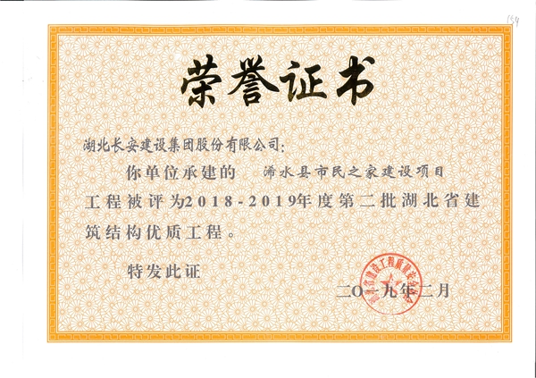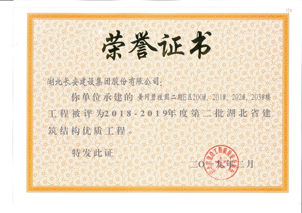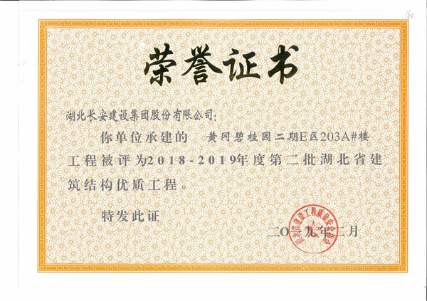 黃岡碧桂園二期E區203A#樓工程被評為2018-2019年度第二批省結構優質工程