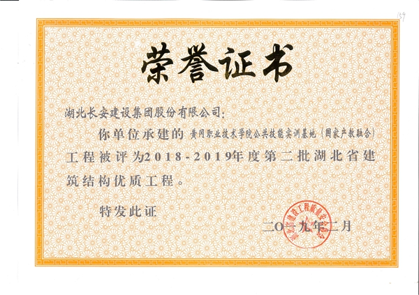 黃石市公安局警務技能訓練基地建筑安裝工程(辦公樓、宿舍樓)工程被評為2018-2019年度第二批省結構優質工程