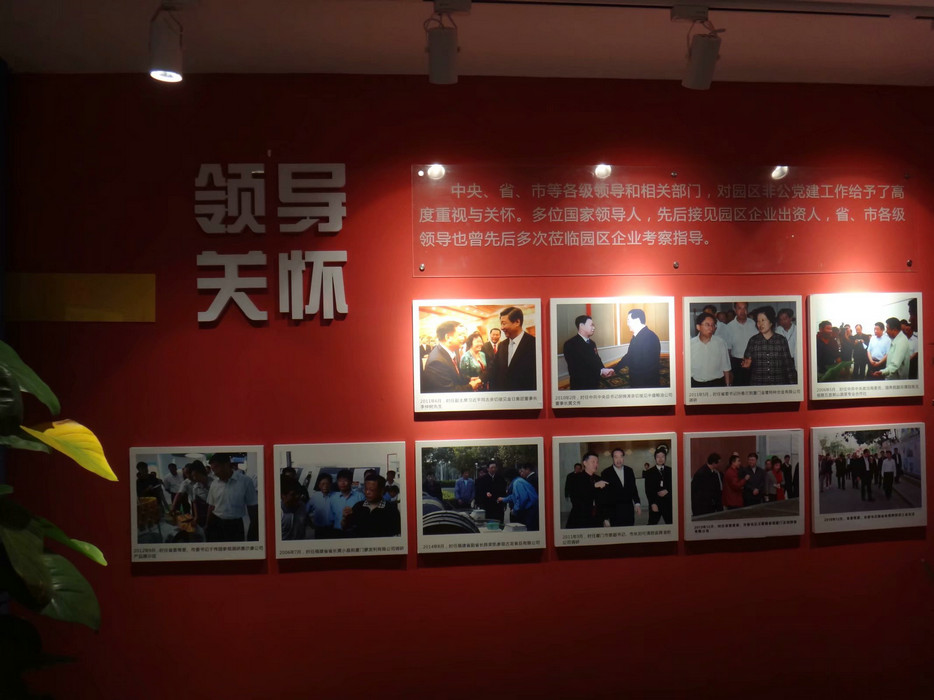 第一站參觀同安工業(yè)園區(qū)黨群活動(dòng)服務(wù)中心。在電梯出入口處擺放了很多企業(yè)簡(jiǎn)報(bào)、報(bào)刊,很好的為各企業(yè)做了宣傳和推介。該中心統(tǒng)一標(biāo)識(shí)為“三角梅”LOGO,即以廈門市花三角梅環(huán)繞黨徽,而黨徽代表黨組織居于領(lǐng)導(dǎo)核心地位,三片花瓣主要體現(xiàn)廈門元素,也代表工、青、婦三個(gè)群團(tuán)組織,整體形象凸顯黨群共建和共同締造的理念。