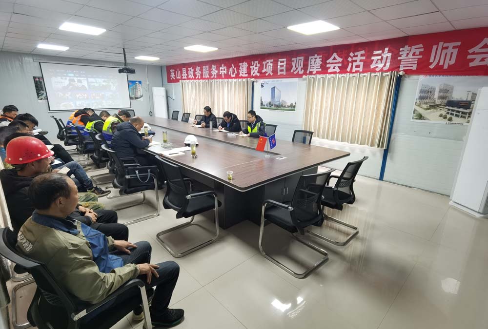 2月16日上午,英山縣政務服務中心項目觀摩會誓師大會在該項目部會議室召開,現場副總李智威作出要求:第一、實行目標管理,確保工程質量高起點,打造標桿工程;第二、要成立“創優”領導小組與分公司、項目部三條線開展活動管理工作;第三、質量安全保證,專人把關確保一次成優,做到不返工、不窩工;第四、各方配合,互創條件,共創精品工程。