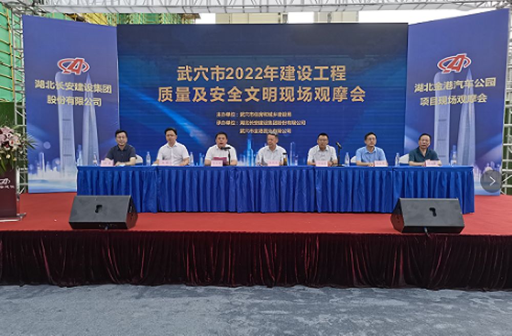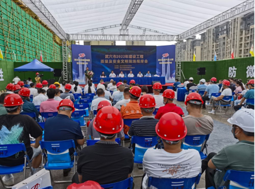 中華建設網訊(通訊員 李智猛)為進一步提升武穴市的建筑工程質量及安全文明施工水平,7月7日上午,武穴市2022年建設工程質量及安全文明現場觀摩會在湖北金港汽車公園項目現場召開。黃岡市住建局三級調研員王漢良、武穴市政府副市長付海強出席會議,武穴市住建局局長王衛紅主持會議,市應急局等單位負責人及全市各建設、施工、監理企業相關負責人共150余人參加會議并進行觀摩交流。
