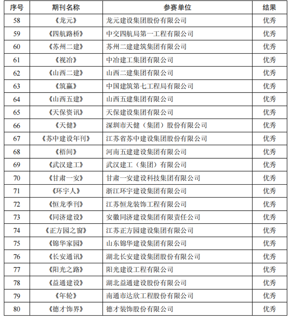 8月4日,中國施工企業管理協會發布《工程建設企業文化建設最佳案例和優秀案例的通知2022年工程建設企業文化作品競賽結果的通知,評選出工程建設企業文化建設最佳案例49個、優秀案例67個和建設企業期刊80(家)種(其中精品42種,優秀38種)。湖北長安建設集團股份有限公司(簡稱長安建設集團紅色文化與企業文化協同發力,黨建引領企業高質量發展》入選企業文化優秀案例、《長安通訊》被評為優秀期刊。