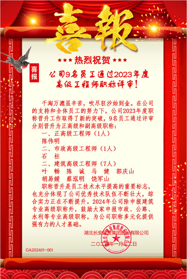 公司9名員工通過2023年度高級工程師職稱評審