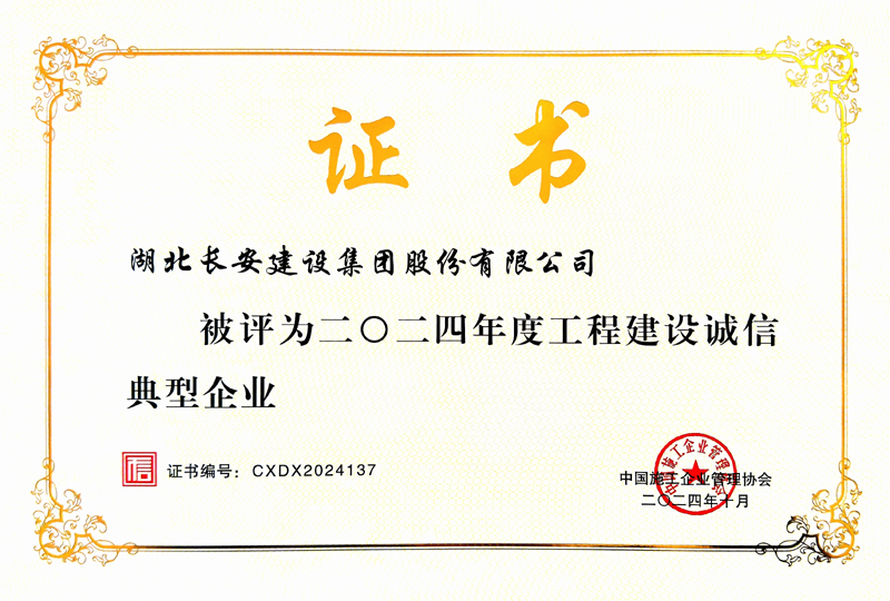 集團(tuán)公司獲評二○二四年度工程建設(shè)誠信典型企業(yè)
