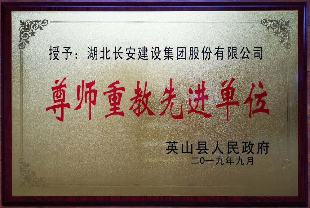 熱烈祝賀集團公司榮獲英山縣尊師重教先進單位