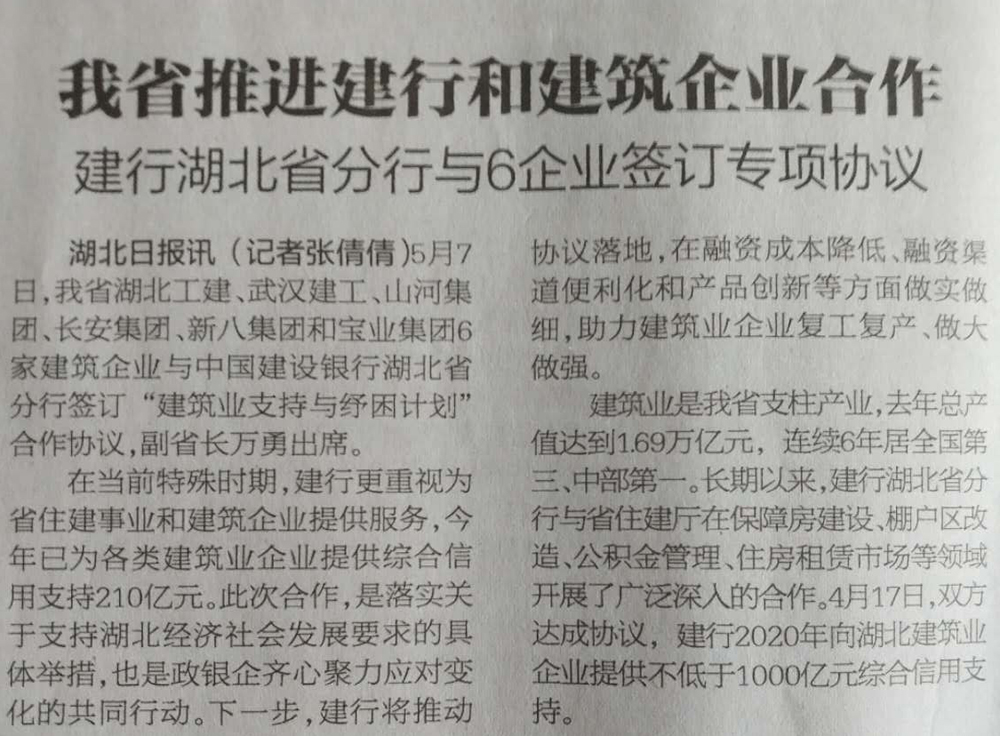 集團(tuán)董事長段衛(wèi)昌參加湖北省建筑業(yè)銀企合作協(xié)議簽約儀式