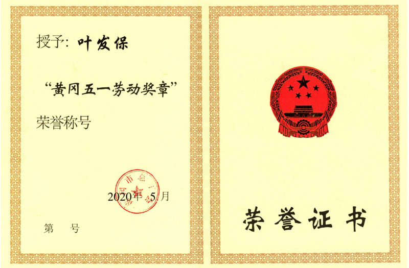 熱烈祝賀集團總經理葉發保獲“黃岡五一勞動獎章”榮譽稱號