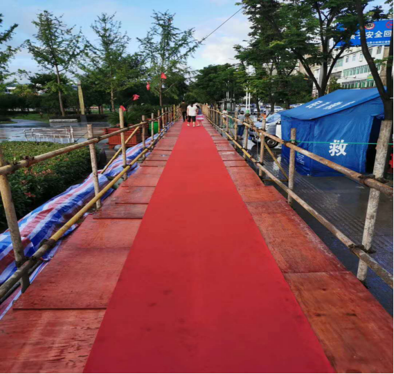 當(dāng)晚21:30,高一米、寬約兩米、總長(zhǎng)約1000米、橋面鋪設(shè)溫馨紅地毯的“防洪橋”,宛如一條長(zhǎng)龍,靜臥于夜色中。有效避免洪水倒灌,確保學(xué)生不涉水,為7月7日—8日高考生順利出入考場(chǎng)提供便利。此舉引起強(qiáng)烈反響,大量英山群眾、英山外出務(wù)工人員、學(xué)生家長(zhǎng)紛紛點(diǎn)贊,長(zhǎng)安建設(shè)集團(tuán)勇于擔(dān)當(dāng)?shù)拇髳坌袨閺V受好評(píng)。