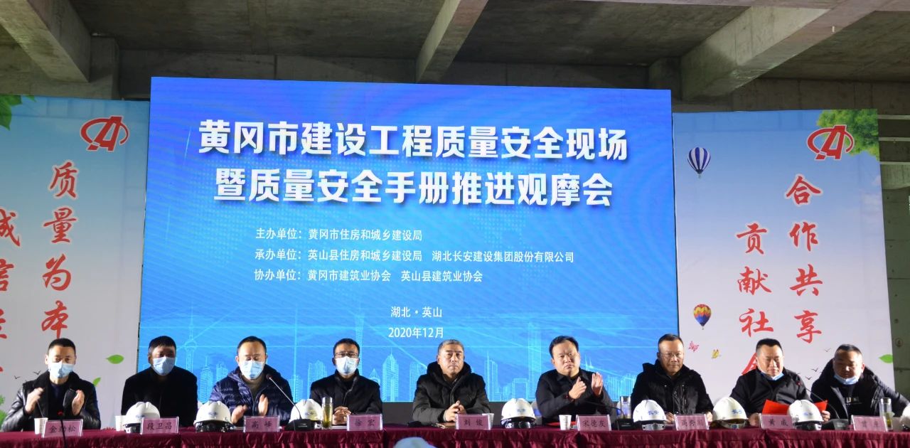 黃岡市建設(shè)工程質(zhì)量安全現(xiàn)場(chǎng)暨質(zhì)量安全手冊(cè)推進(jìn)觀摩會(huì)在湖北長(zhǎng)安建設(shè)集團(tuán)英山婦幼保健院項(xiàng)目現(xiàn)場(chǎng)召開