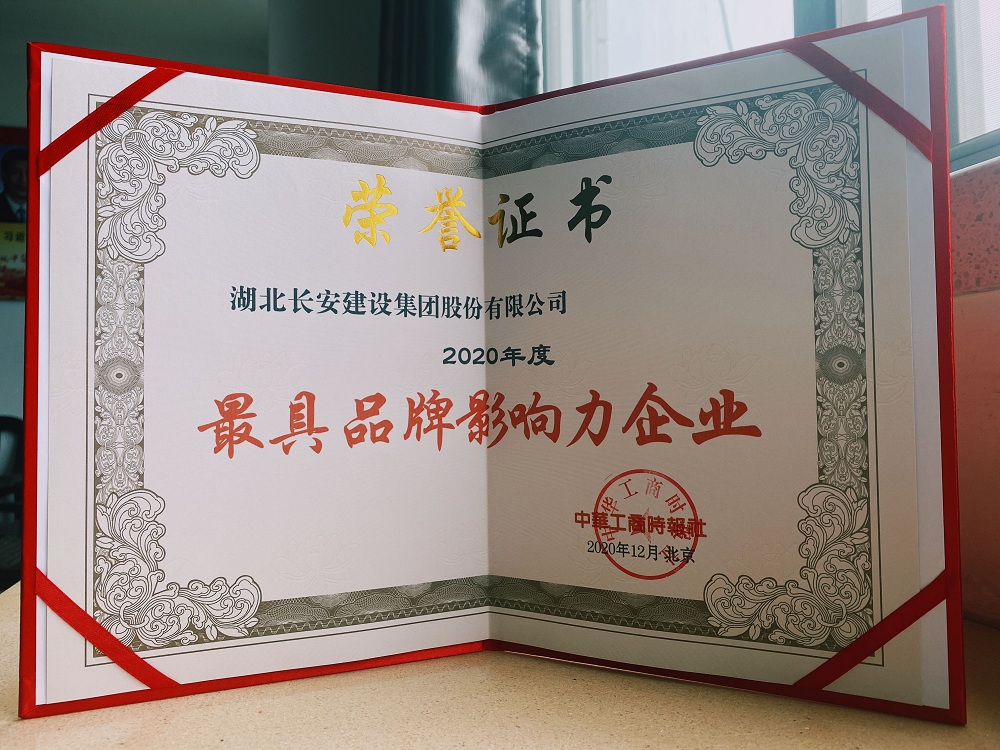 這是湖北長安建設(shè)集團股份有限公司第一次獲此殊榮,也是湖北省唯一榮獲“2020年度最具品牌影響力企業(yè)”稱號的民營企業(yè)。