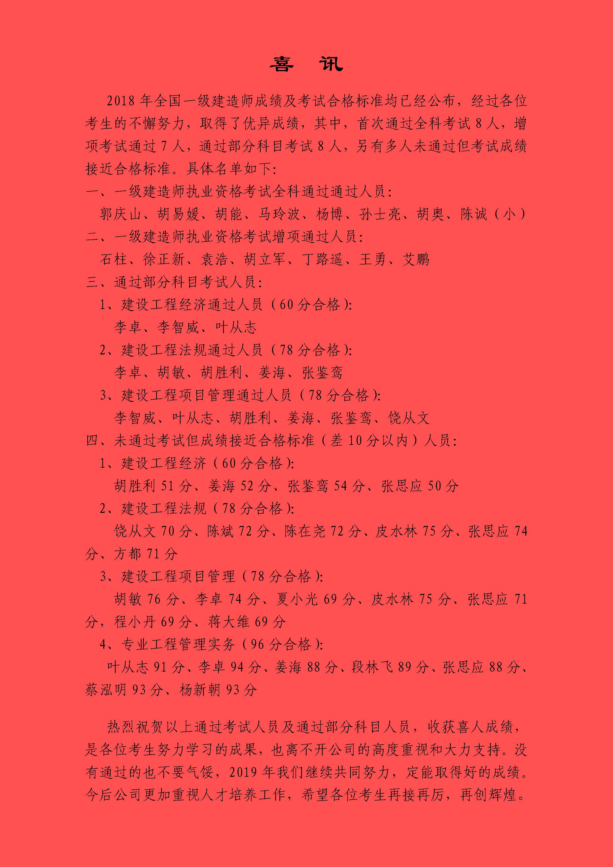 一級建造師及增項通過人數,歷年最多,是我們努力奮斗的最好證明。