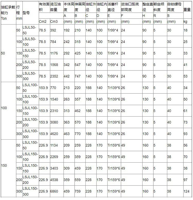 機(jī)械自鎖液壓千斤頂參數(shù):