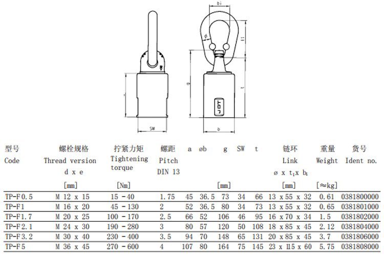 ▲TP-F型旋轉吊環應使用10.9級并經過裂紋檢測的螺栓;